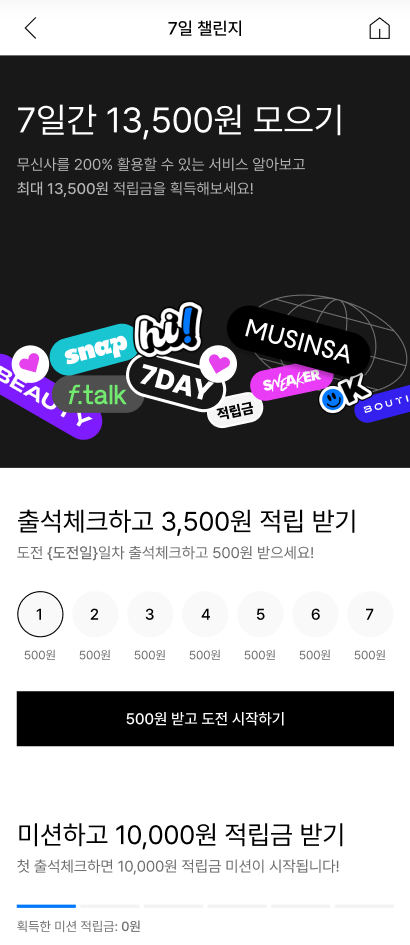 → 도전 시작하기 (가능성 #1) → 매일 출석체크 수행 (가능성 #2)