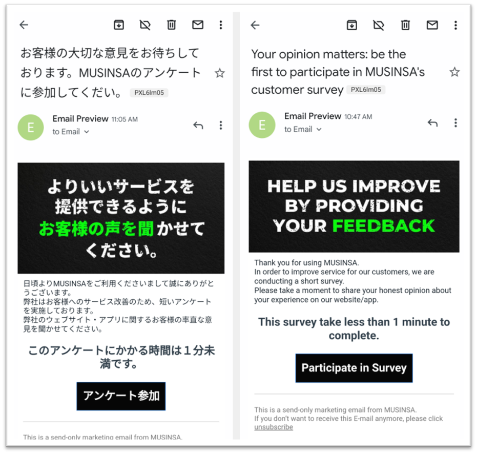 이메일로 보낸 설문 참여 유도 캠페인 CRM 스크린샷